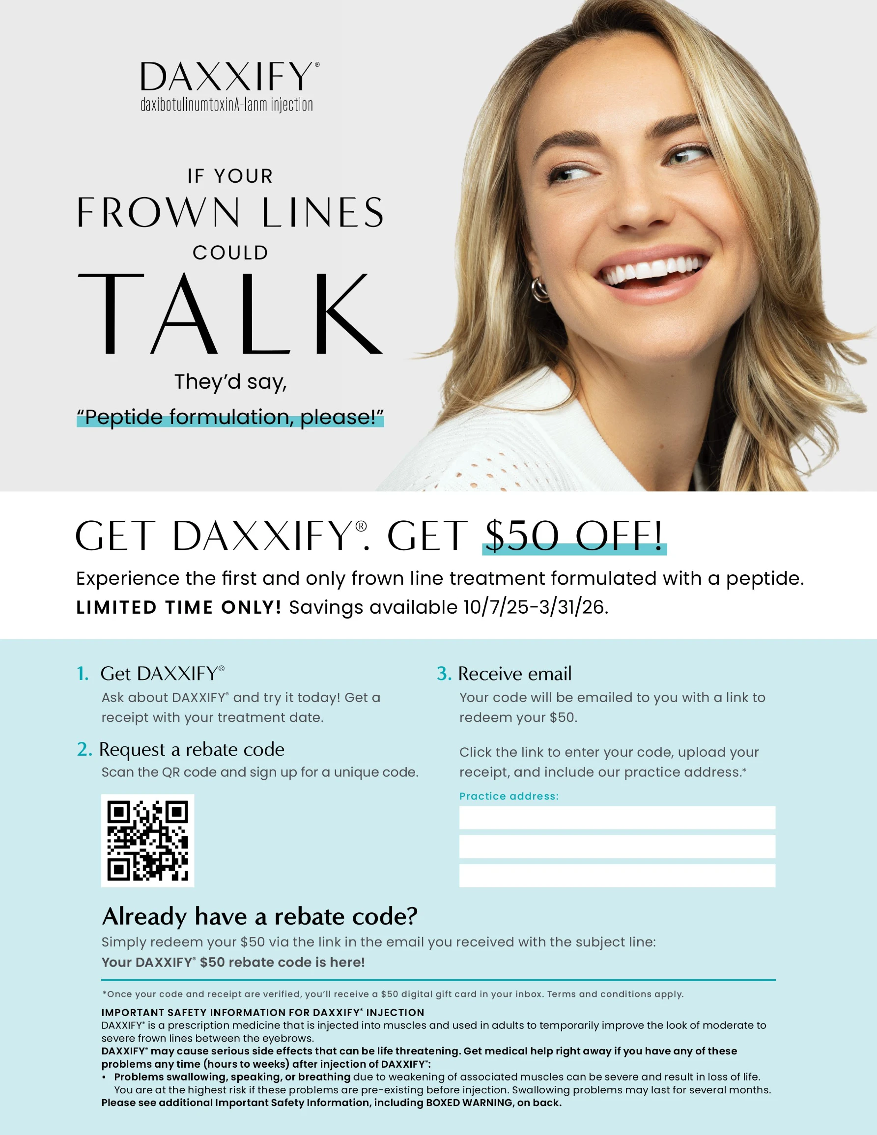 No significant downtime is required for Daxxify, so regular activities can be resumed immediately. There is little chance of side effects, although there may be temporary swelling or redness at the injection site.